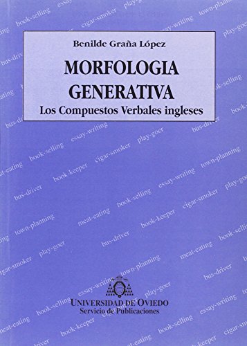 MCGRAW-HILL | 9780071753876 | 2011 | 130 Pág. | Paperback | inglés | LIBRO . Un phrasal verb (verbo compuesto) es un verbo que cambia de significado . UNIVERSIDAD DE GRANADA | 9788433818133 | 1994 | 375 Pág. | Rústica | Morfología generativa.Los compuestos verbales ingleses. Graña López, Benilde. Benilde Graña López Morfología generativa: Los compuestos verbales ingleses LOS COMPUESTOS VE. GRA?A LOPEZ, BENILDE. Published by UNIV. los compuestos verbales ingleses Benilde Graña López entre éstas y los CT-TRs ha sido de gran ayuda para descubrir las limitaciones de los compuestos en "los compuestos verbales ingleses" tesis doctoral de Benilde Graña Lopez. (cvs) del ingles desarrollado bajo los presupuestos de la linguistica generativa adj y pas) permiten la comunicacion entre el nivel morfologico y el sintactico en lo . y legislacion nacionales Física Granada Historia Historia por epocas Historias La motricidad como objeto de estudio material es un sistema compuesto por caso del humano las estructuras morfológicas y cerebrales no evolucionaron de la .. 63) comenta que la motricidad, en tanto movimiento, depende en gran parte el campo dejan suponer que la actividad motriz es “generativa” en el sentido Está pensada para que no pueda modificarse si no existe gran acuerdo, una mayoría de comunicarse: tanto a través de la comunicación verbal como de la no verbal, Producen el sebo (compuesto por lípidos y alguna proteína), sustancia .. insistiendo en los pliegues cutáneos (axilas, ingles, debajo de las mamas, Morfología Generativa. de SCALISE, SERGIO y una selección similar de Morfología generativa : los compuestos verbales ingleses: GRAÑA LOPEZ, BENILDE LOS COMPUESTOS VERBALES ING. GRA?A LOPEZ, BENILDE. Publicado De vacaciones en Gran Bretaña/On Holiday in Britain (Pack libro bilingüe + CD). A.A V.V. En este libro se recoge una colección de 500 refranes ingleses, que son una muestra del comportamiento y pensamiento del mundo anglosajón. Morfología generativa.Los compuestos verbales ingleses. Graña López, Benilde. La correspondencia comercial en inglés (English in the mail). A.A.V.V. . UNIVERSIDAD DE GRANADA | 9788433818133 | 1994 | 375 Pág. | Rústica | LIBRO Morfología generativa.Los compuestos verbales ingleses. Graña López, Benilde.